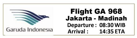 Take off dari Bandara Soekarno-Hatta Jakarta Pukul 08:30 WIB. Landing di Madinah, Prince Abdullah International Airport